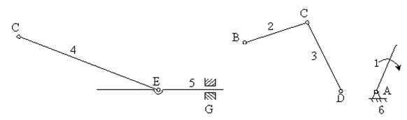 由此可进行杆组拆分,得到如图2-8所示的3个基本杆组。